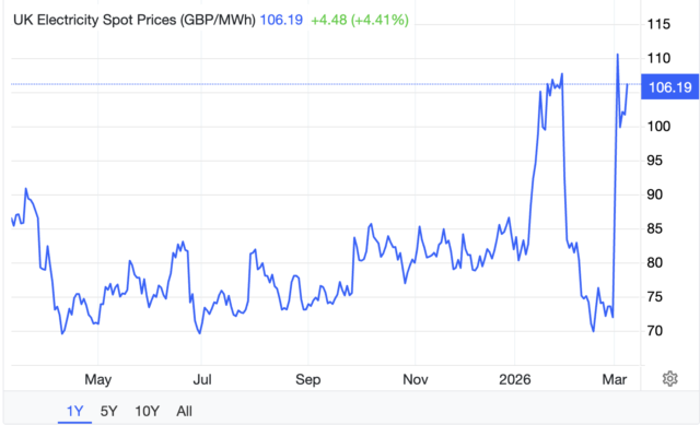 Oil: Oil prices rocketed to over $100/bbl – their highest levels since 2022. Large distributors of oil have been forced to cut output due to the Strait of Hormuz remaining largely closed.