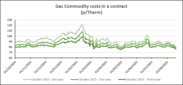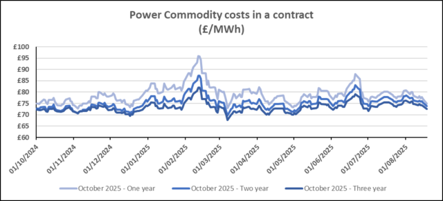 Wholesale gas and electricity prices were stable on Monday, following the healthy reductions seen over the last few trading days. One-year contract prices are around £75 per MWh for electricity and 75.9p per therm for gas, with very narrow ranges of less than 5% between 1–3 year pricing.