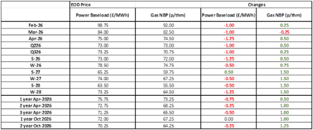 Gas: Gas prices rebounded yesterday as contracts took in more premium due to President Trump’s push for Greenland, driving market sentiment. Despite this, the UK is expecting to receive 10 LNG cargoes in the near curve, keeping supplies high.