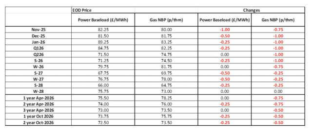 Wholesale gas and electricity prices continued their trickle downward on Monday, which is good news given the prices for all non-commodity charges that are coming through on electricity. The net effect is that gas prices at retail continue to soften, whilst electricity firms firm because of the increased non-commodity costs.