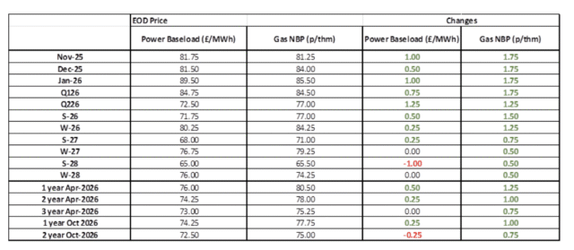 The curve remains very flat, with less than 5% separating 1- and 3-year contracts on both gas and electricity, while October renewals continue to represent the best value.