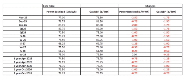 Wholesale gas and electricity prices continued their downward momentum on Monday. However, the reduction in wholesale prices has had little impact on the retail market due to changes in metering and other surcharges. These additional costs mean that the total cost of electricity is still increasing, despite the drop in wholesale prices. In fact, less than 50% of the pence per kWh paid reflects the wholesale cost. Let us know if you would like further details as we have a detailed analysis we’d be happy to share.