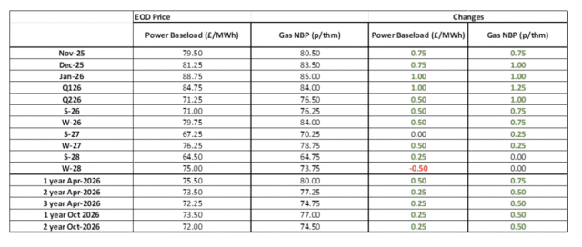 30th October 2025 Energy Price Alert – UK Gas & UK Electricity