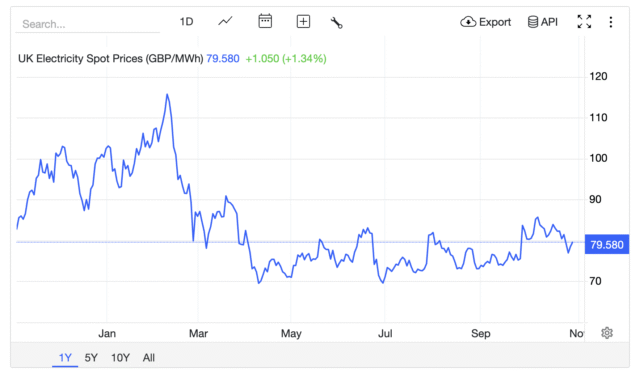 At a retail level, prices are stable, with electricity contracts around 20p per kWh for day rates and 16p for night, with gas around 4p per kWh. The pressure on bills is coming from non-commodity charges, which continue to rise.