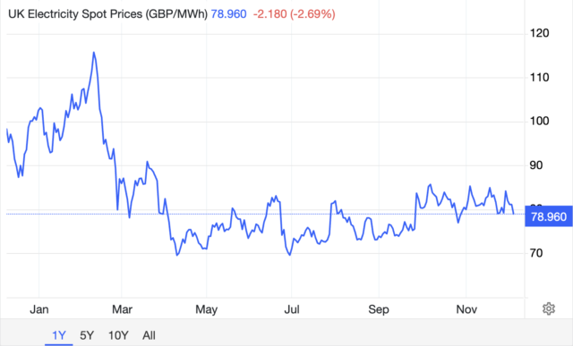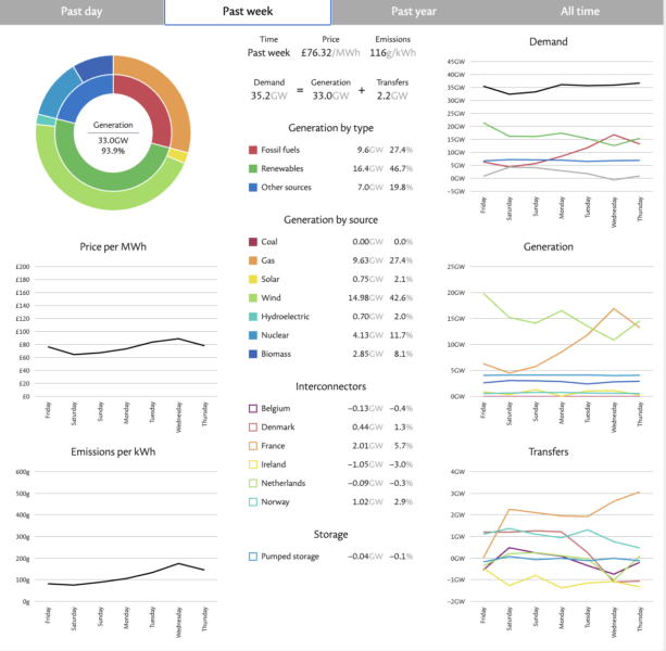 On the electricity generation front prices dropped back slightly last week to £76.32/MWh, driven by renewables being at 47% with fossil fuels being at 27%.